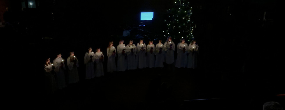 Måske var det også en kombination af det hele, men hvorom alting er, så var der jul i luften, og den, der dryssede lidt smådovent rundt i skolens fællesareal den 1.12., gik fra bod til bod, faldt i snak her og der og gumlede på en klejne, kunne nok ikke værge sig for et lille anfald af julestemning - måske ansporet af at have gjort en god handel ved at købe et stykke Duborg-nostalgi i form af gamle møbler, lamper og landkort, men da helt sikkert, da Duborg-Skolens lyspiger sidst på aftenen indtog gulvet med trestemmig sang og således rundede arrangementet af på en både festlig og højtidelig måde.